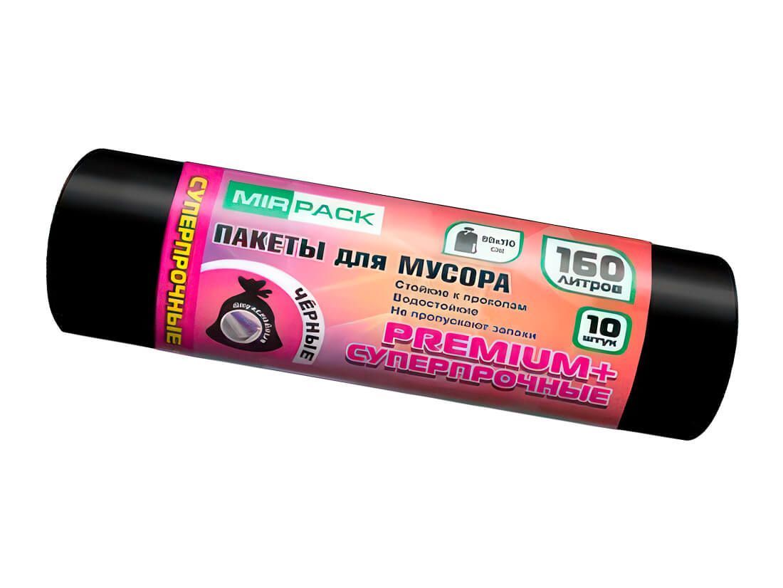 Мешки для мусора 160 л, ароматизированные, черные, в рулоне 10 шт., ПВД, 35 мкм, 1100х930 мм, PREMIUM+, 16010530